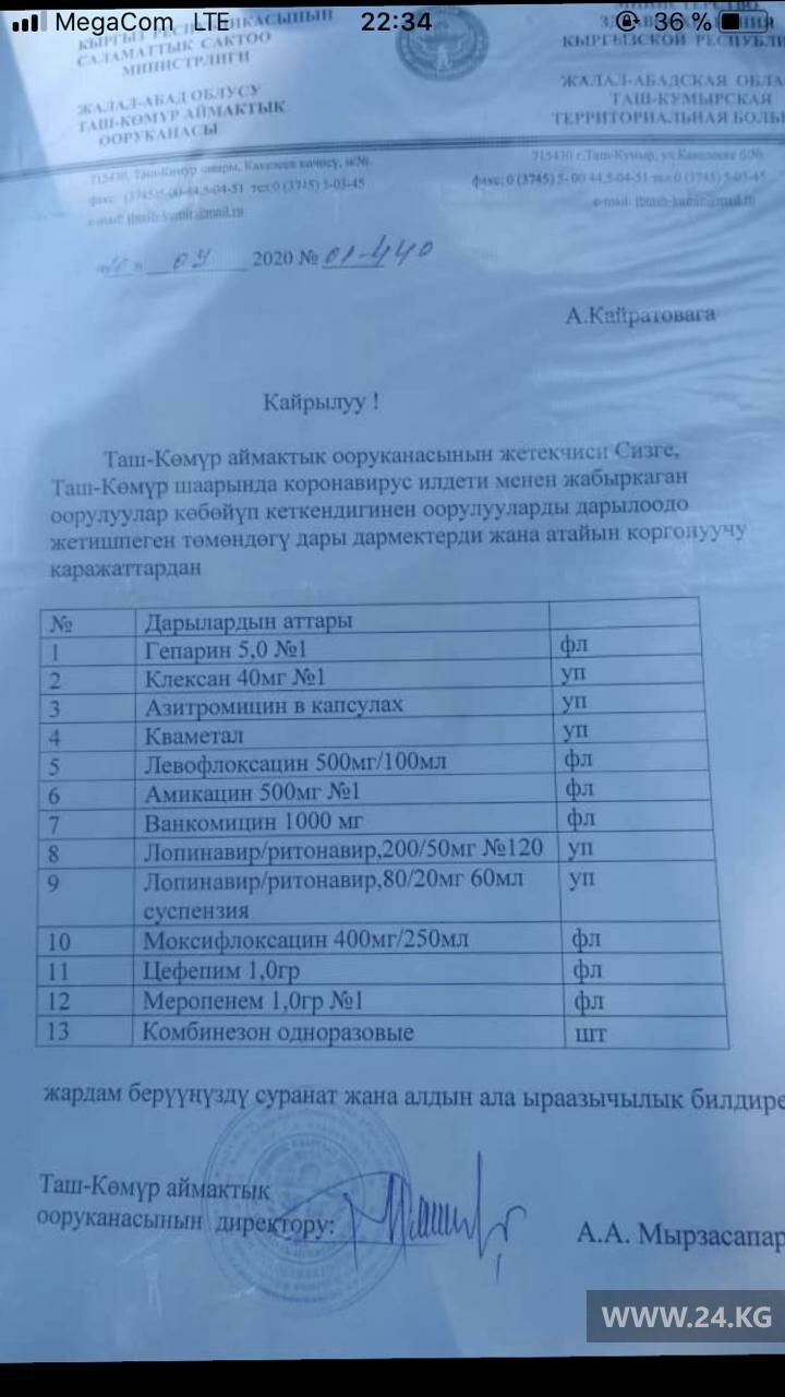 В Таш-Кумырской территориальной больнице не хватает медикаментов и СИЗ. Об этом 24-kg.com сообщила читательница.