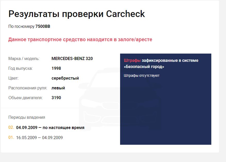 При проверке госномера автомобиля на портале Carchek выяснилось, что он принадлежит «Мерседесу».