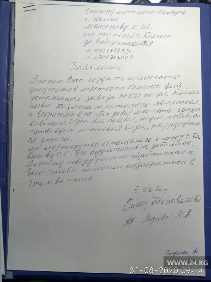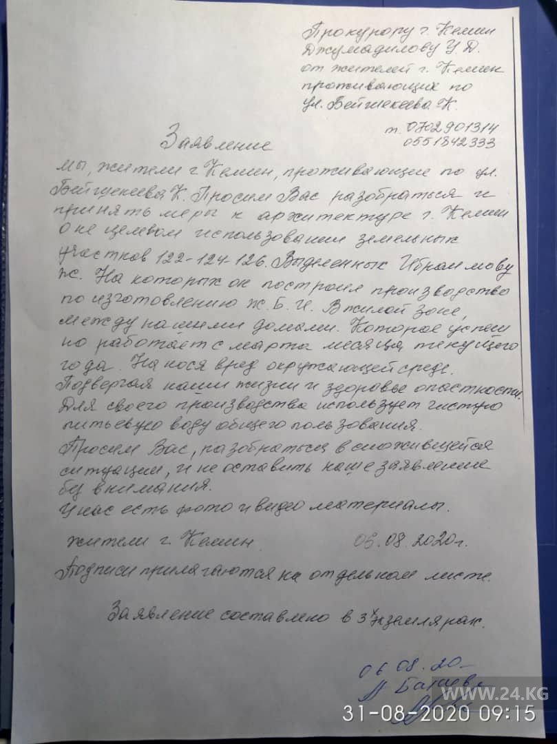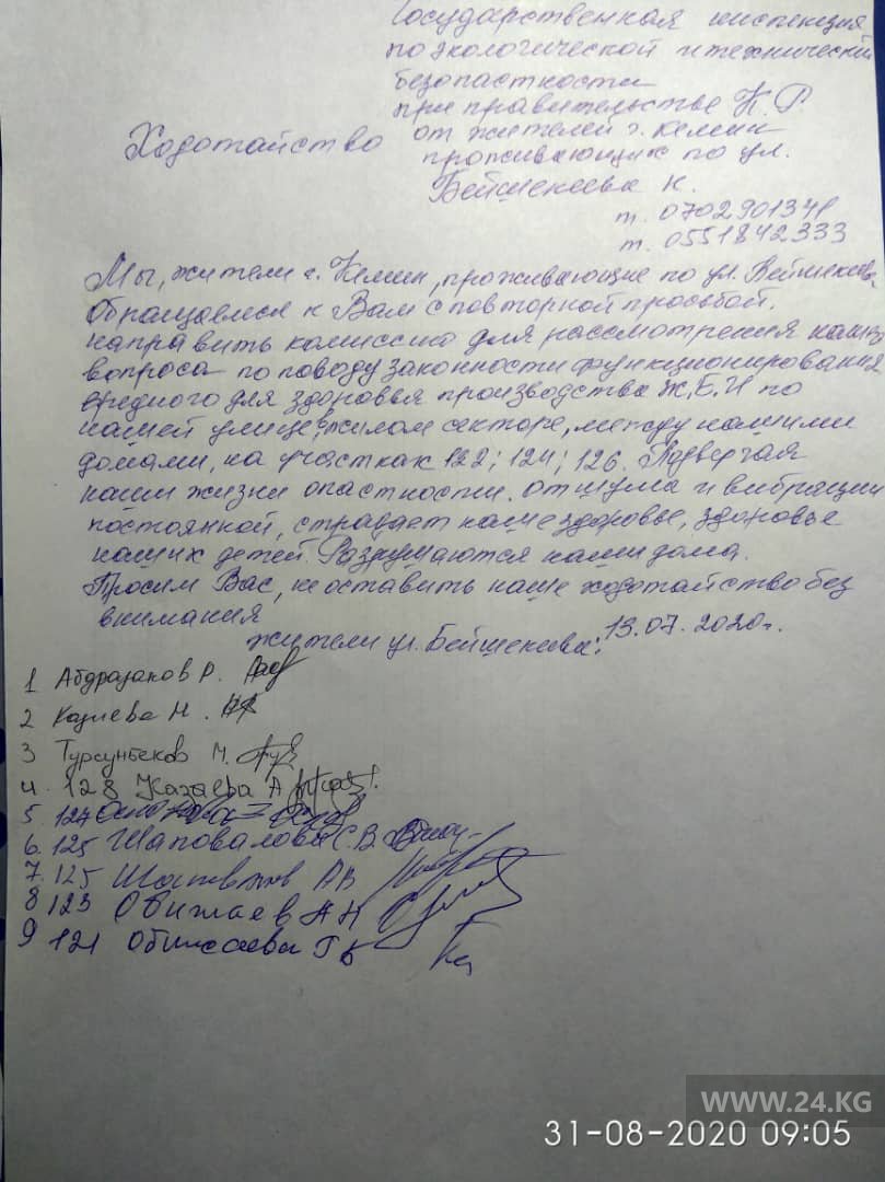 По их словам, неизвестный мужчина построил завод ЖБИ на улице Бейшекеева. Жильцы с самого начала пытались не допустить строительства, поскольку участок находится в жилом спальном районе.