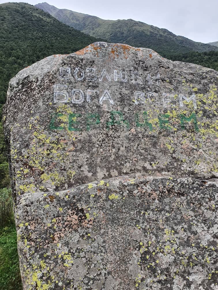 Здесь же — надписи на камнях и брошенные баллончики с краской.