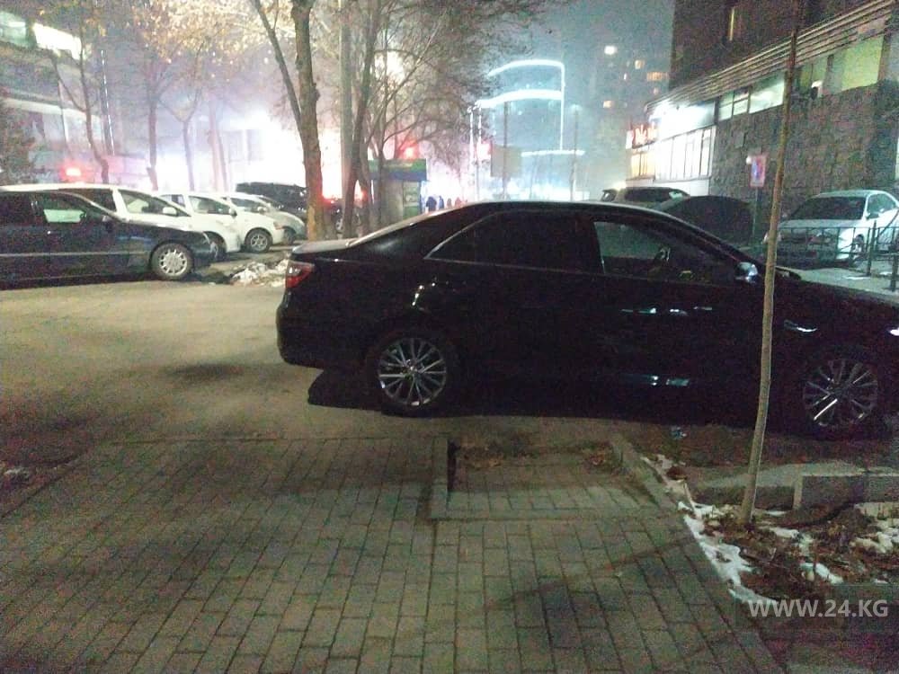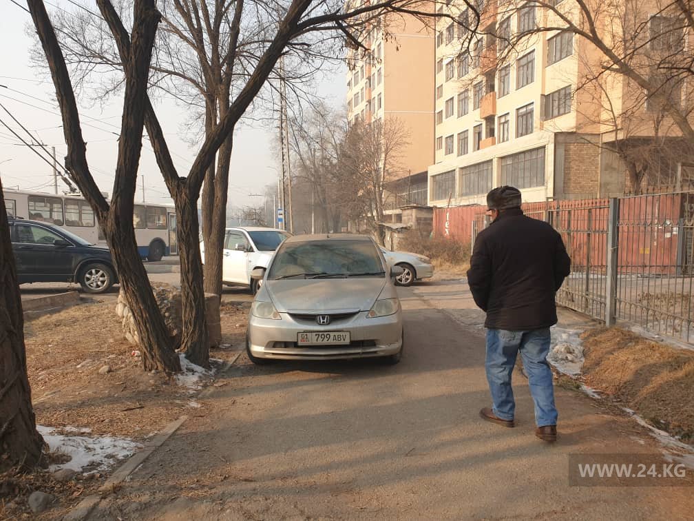 Перегородил дорогу пешеходам на улице Токтогула и владелец этого авто. «Оставил машину на пути. Неужели, он не видел, что машина будет мешать проходу?» — спрашивает автор фото.