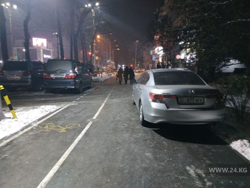 Каждую неделю бишкекчане жалуются на припарковавшихся на аллее на проспекте Манаса. «Оградительные столбики поставили, но кто-то их уже сломал. Заезжают на тротуар, а это опасно. Возле точек фастфуда много людей, но нарушителей это не останавливает», — написал автор снимка.