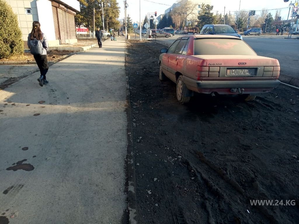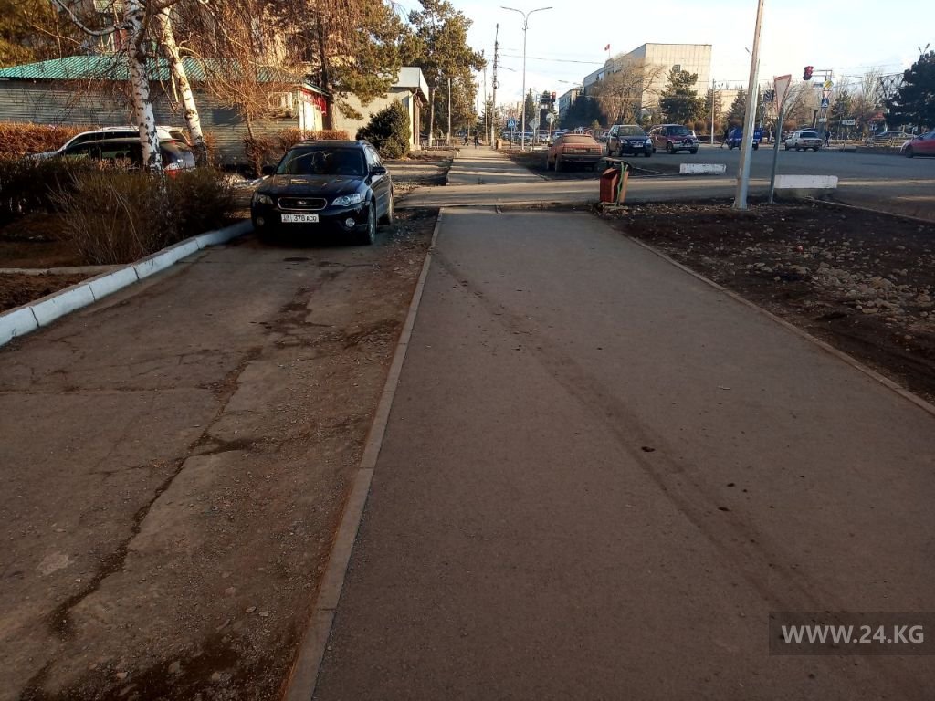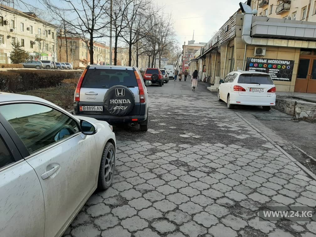 На тротуаре паркуются на проспекте Чуй, от улицы Турусбекова и до Калыка Акиева.