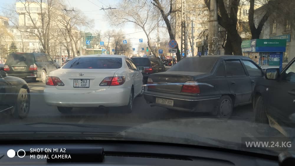 «Возле Медакадемии на улице Ахунбаева стоит знак «Остановка запрещена». Заблокировали полосу для движения и спокойненько пошли к банкомату», — написал автор видео.
