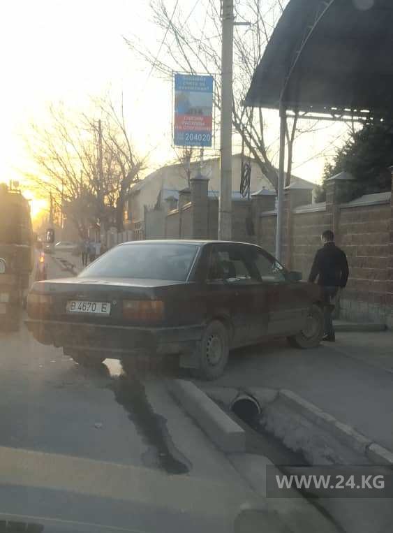 Житель ЖК «Алтын-Булак» просит принять меры в отношении нарушителя: оштрафовать за порчу чужого имущества и парковку в неположенном месте. Фото сделано возле дома № 2/21 на улице Тыналиева.