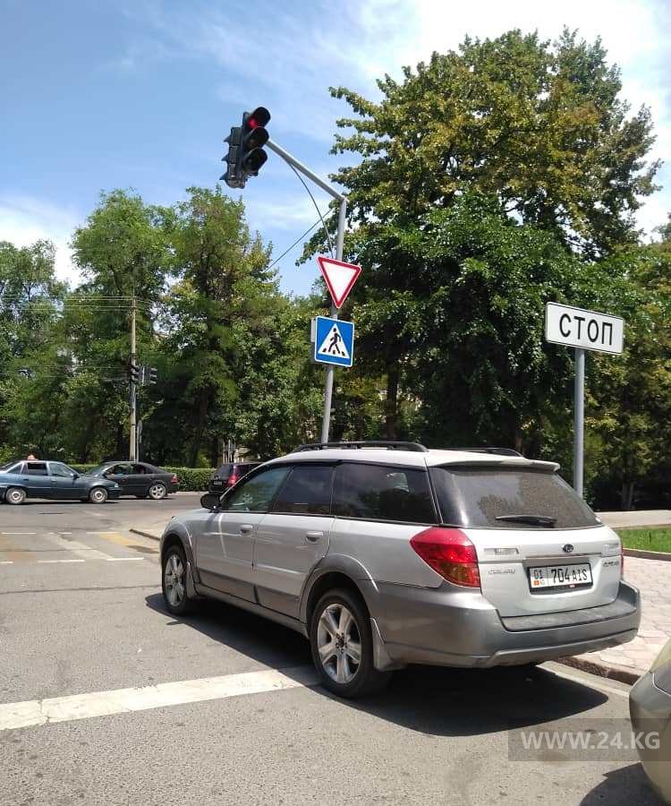 С нарушением припарковали и этот автомобиль. Фото сделано на пересечении улиц Тыныстанова и Боконбаева.
