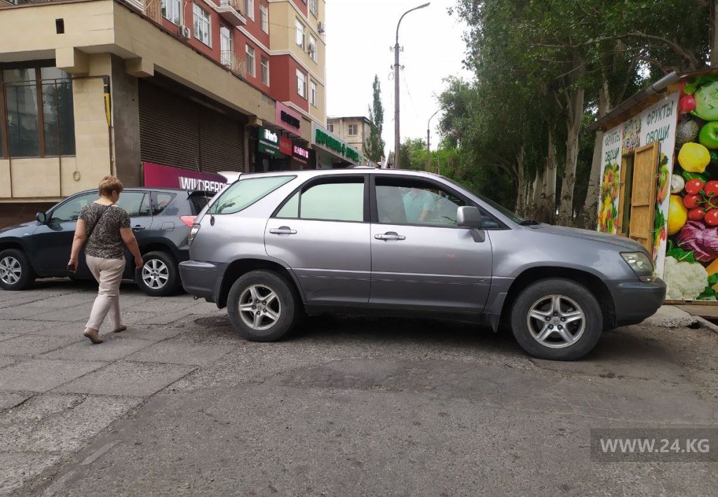 На тротуаре припарковался владелец этого автомобиля в Оше.