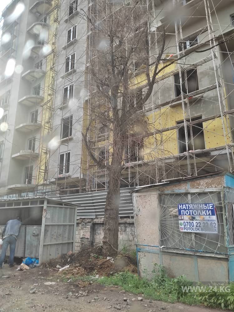 Бишкекчане просят спилить аварийное дерево на улице Ажибека Баатыра, 1а. Об этом 24-kg.com сообщил читатель.