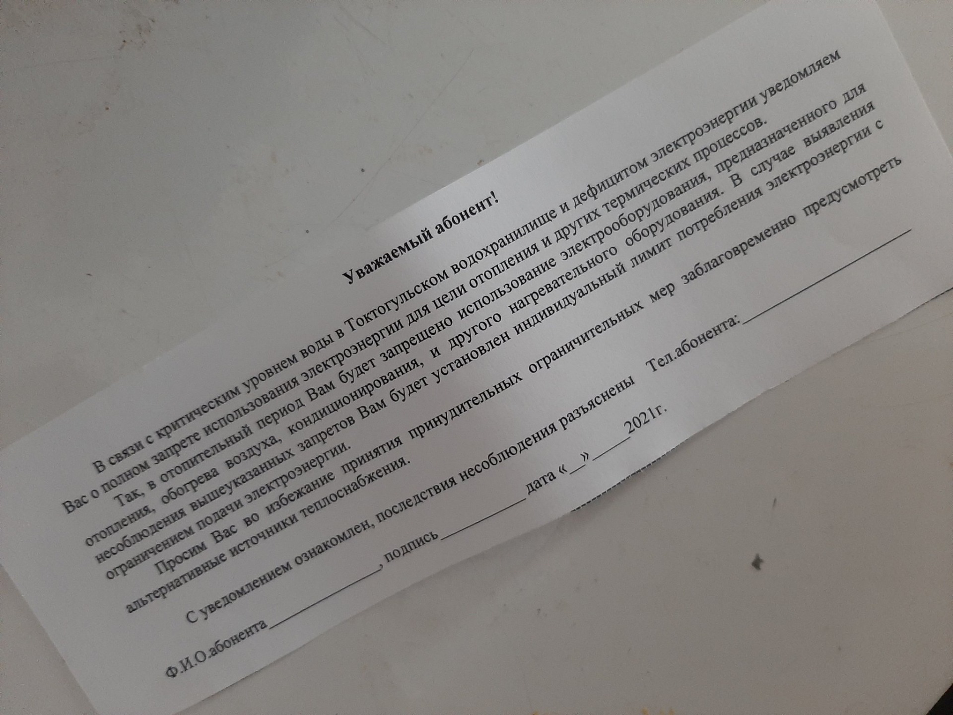 Кыргызстанцы стали получать письменные уведомления о запрете использования электрооборудования и кондиционеров для отопления помещений. Об этом сообщают пользователи социальных сетей.