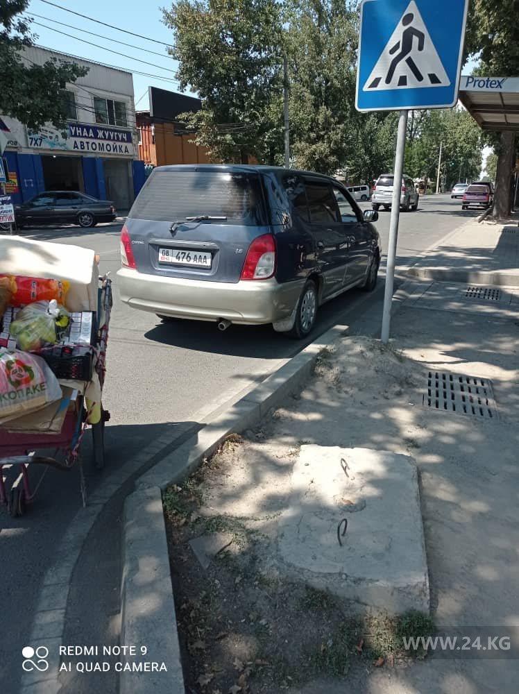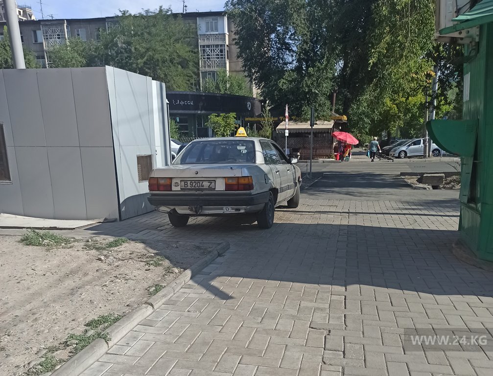 «Водитель автомобиля (госномер B 9204 Z) регулярно нарушает ПДД, паркуясь в неположенных местах. В разгар ремонта улицы Огонбаева он парковал свою Audi 100 на пешеходном переходе. После ремонта мужчина выбрал себе в качестве места парковки тротуар. Люди вынуждены обходить авто через арык. Охрана гипермаркета бессильна против таксиста, который продолжает игнорировать ПДД», — написал читатель.