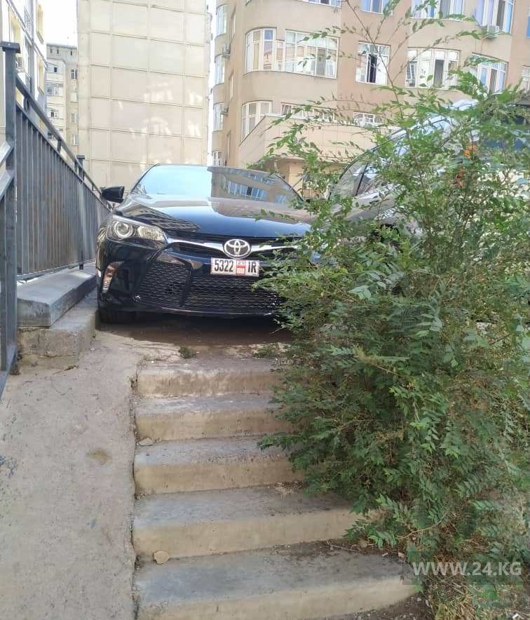 В микрорайоне «Тунгуч» возле дома № 57 перегородила выход к лестнице машина с иностранными номерами.