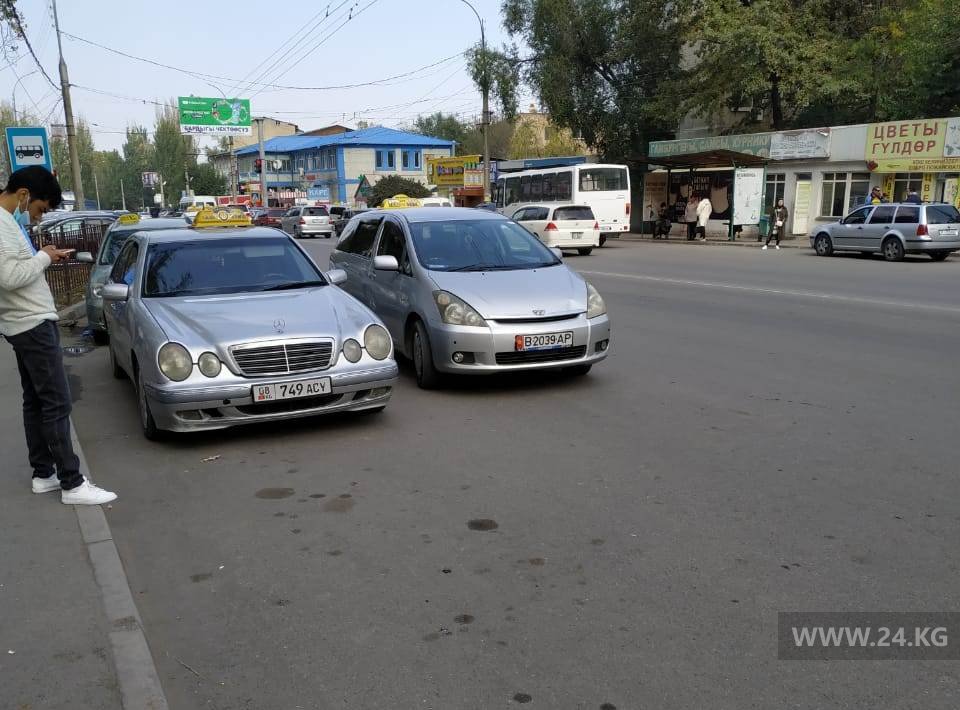 Вот так паркуются таксисты на остановке общественного транспорта в микрорайоне «Аламедин-1».