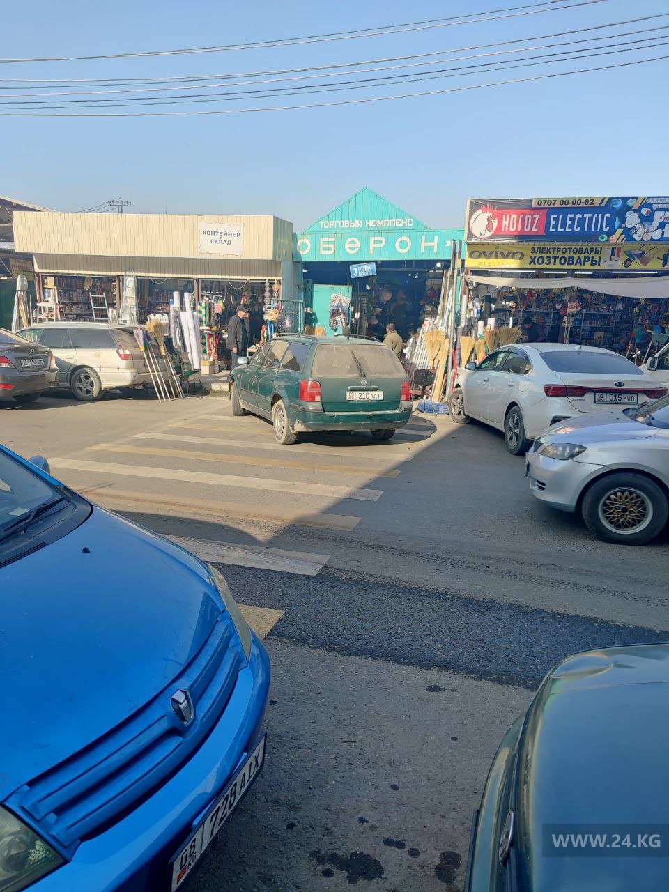На улице Безымянной возле Орто-Сайского рынка автомобили оставили на разметке пешеходного перехода.