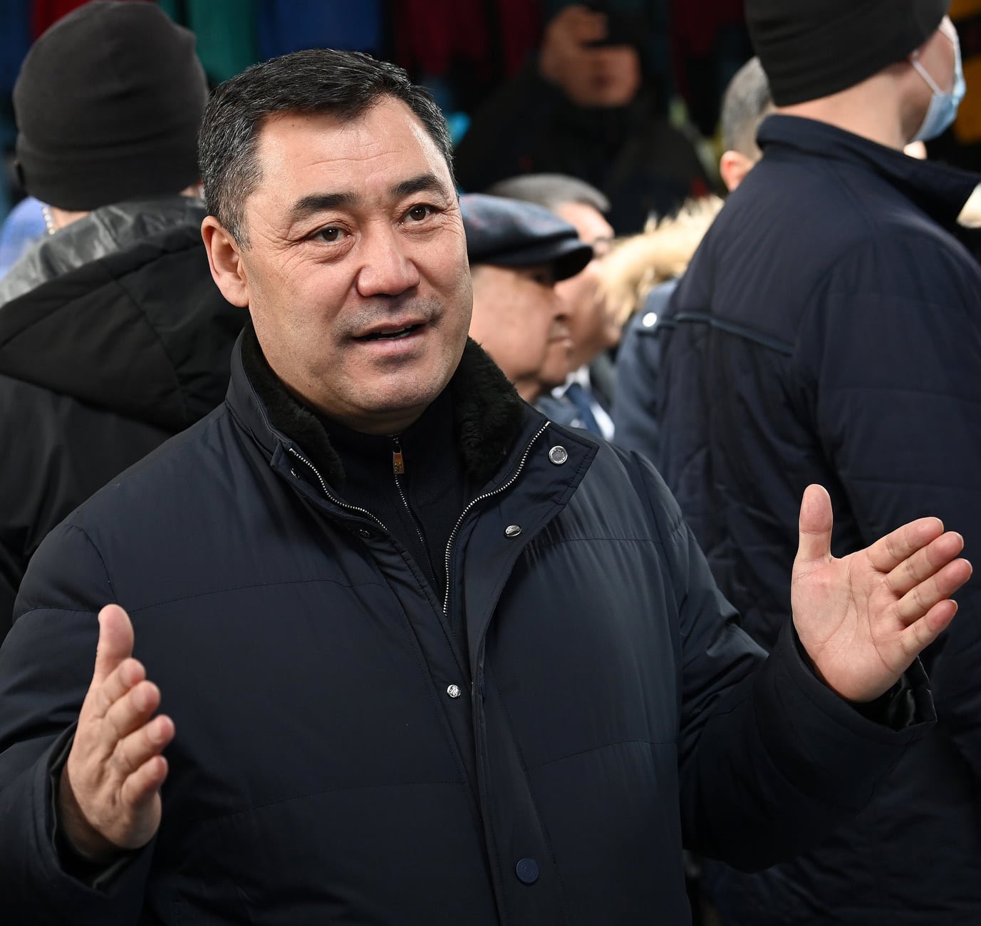 Садыр Жапаров прогулялся по рынкам Бишкека в дорогой куртке итальянского бренда. Пользователи социальных сетей опять обсуждают гардероб президента.