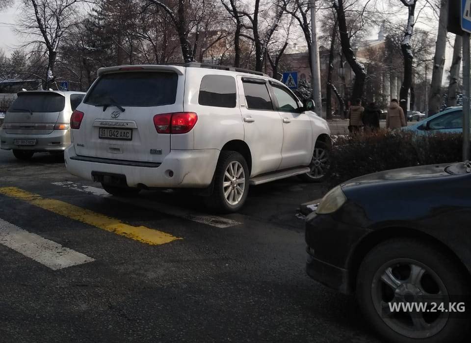 «Парковка на стоп-линии. Перекресток улиц Токтогула и Суюмбаева. Даже зеркала сложены», — прокомментировал фото горожанин.