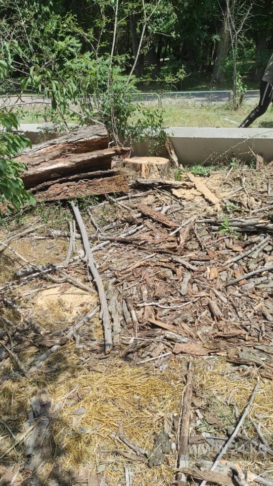 После жалобы читателя 24-kg.com Бишкекзеленхоз срубил засохшие тополя в парке имени Ататюрка.