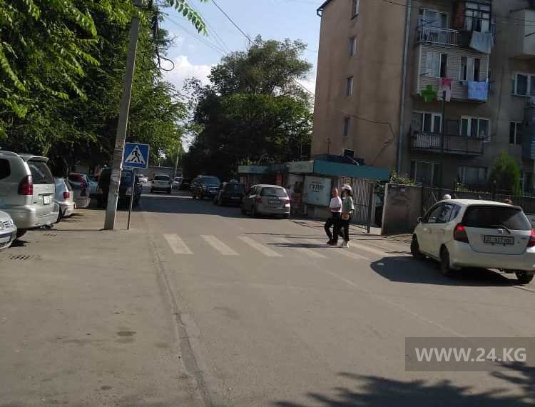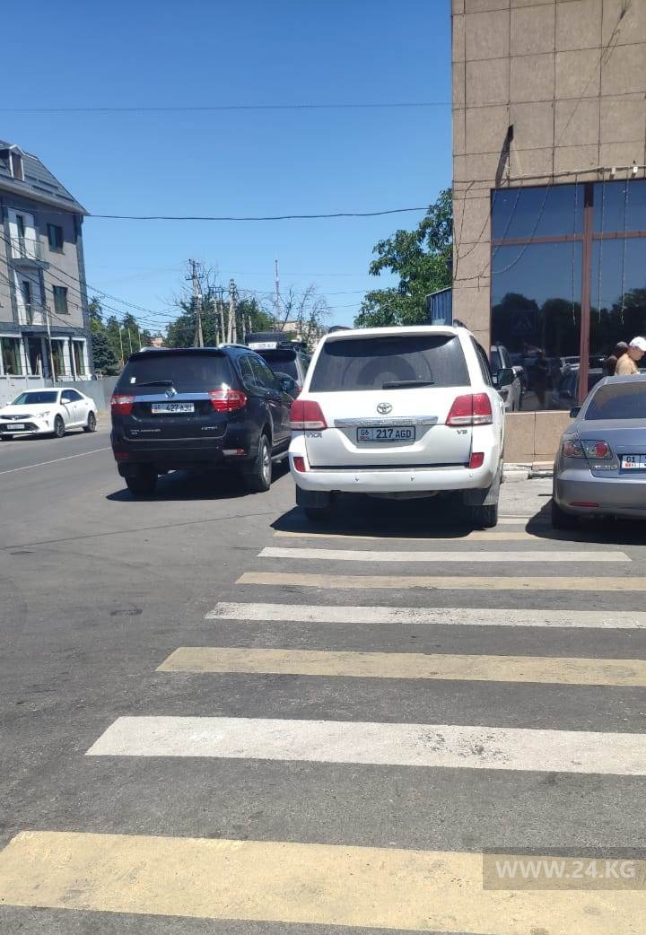 На пересечении улицы Боконбаева и бульвара Эркиндик автомобилем полностью перекрыли зебру.