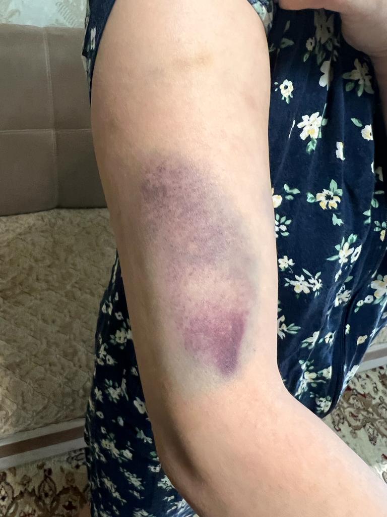 «Мы прожили вместе 13 лет. Два года назад развелись. Он уроженец Кыргызстана, но гражданин России — живет и работает в Москве. Каждый раз, когда он прилетает в Бишкек, приезжает увидеться с детьми и каждый такой приезд оканчивается для меня избиением. При этом я никак не ограничиваю его в общении с детьми, не мешаю. Он набрасывается на меня беспричинно. После последнего избиения, произошедшего 17 июля прямо на улице, я оказалась в больнице с черепно-мозговой травмой и многочисленными ушибами. На этот раз он был не один. В избиении участвовала его сестра», — рассказала жертва насилия.