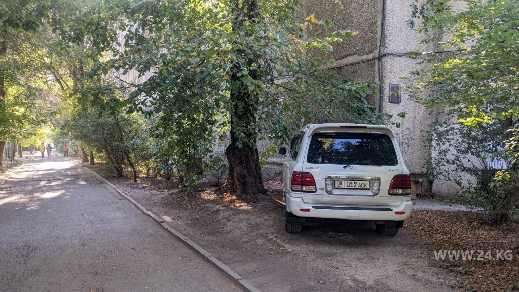 Этот автомобиль, по словам автора фото, каждый день заезжает по тротуару и паркуется в парковой зоне микрорайона «Аламедин-1».