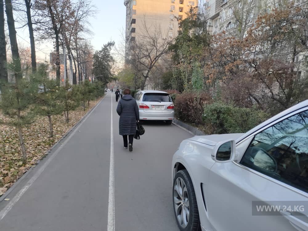 На тротуар заезжают в районе пересечения улицы Токтогула и проспекта Манаса.