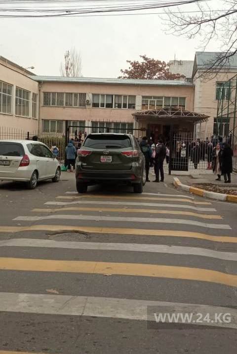 Чудаки парковки. В Бишкеке поставили машину на пешеходном переходе возле школы