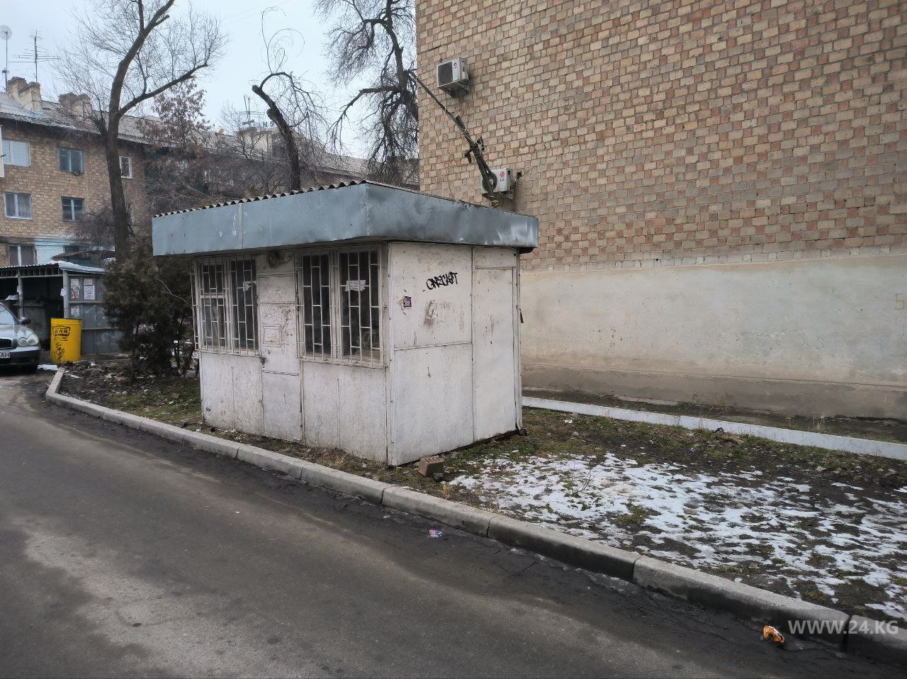 В Бишкеке просят убрать с газона заброшенный киоск