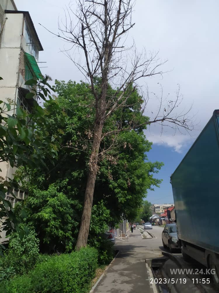 По словам горожанина, жители трижды обращались в Бишкекзеленхоз, однако дерево так и не убрали.