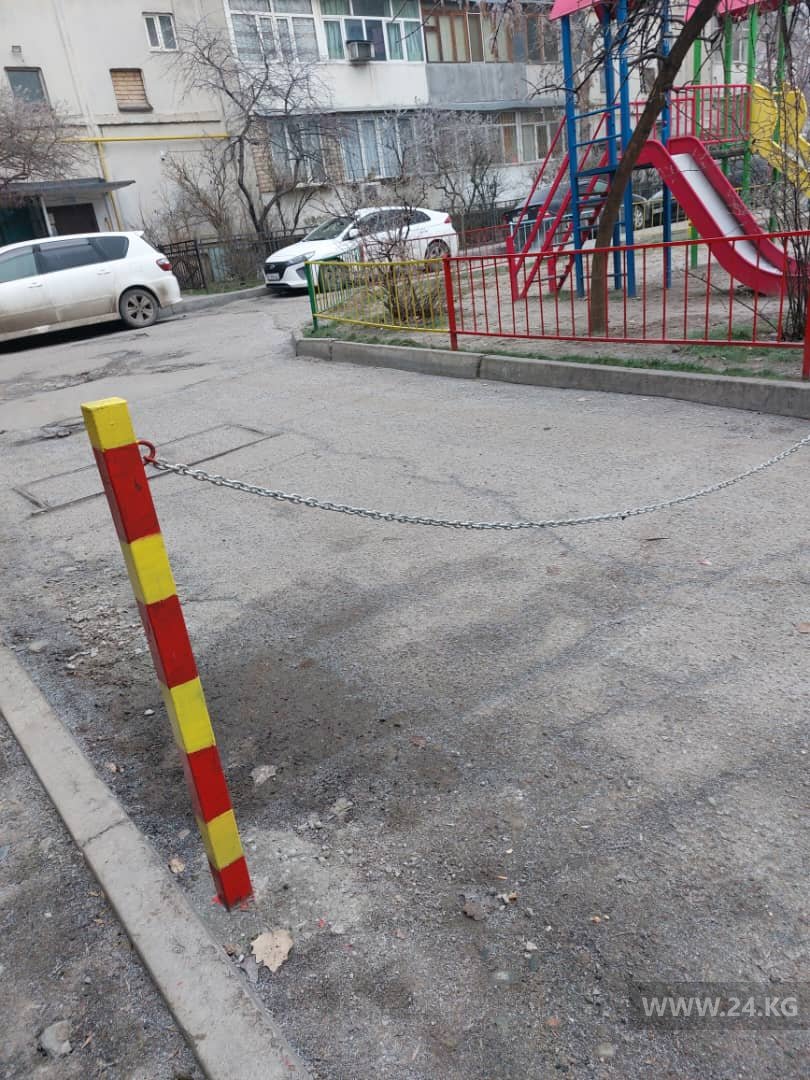 В микрорайоне «Джал» во дворе домов 88-90 установили столбики с цепью. Об этом 24-kg.com сообщил читатель.