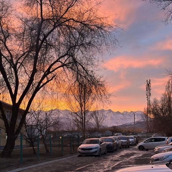 Пока же вернемся в реальность и все-таки еще не ушедшую зиму. Поэтому февральское утро в Бишкеке выглядит так. Фотографию сделала Екатерина Галенко.