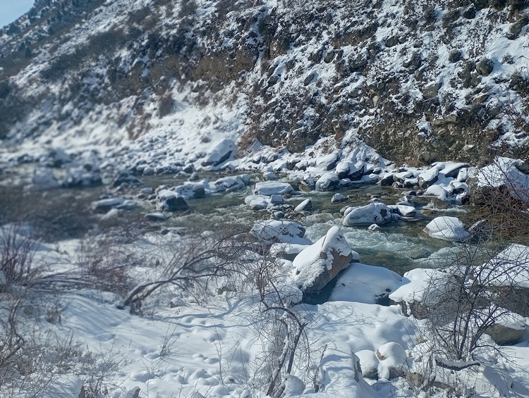 И еще полюбуемся на заснеженное Аламединское ущелье. Его также в начале марта запечатлела Майрам Буркутова.