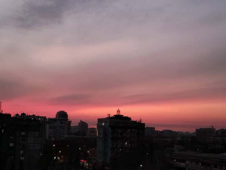 А теперь закат в Бишкеке с высоты многоэтажного дома и из района Моссовета. Фотографию сделала Анна Сомова.