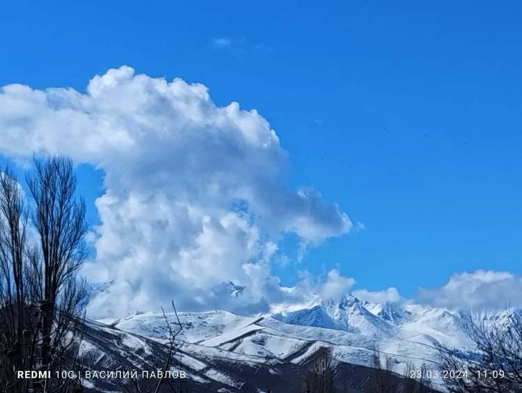 Завершим наше путешествие на Иссык-Куле. Наш постоянный автор Василий Павлов сделал фотографии заснеженных пиков в Джети-Огузском районе.