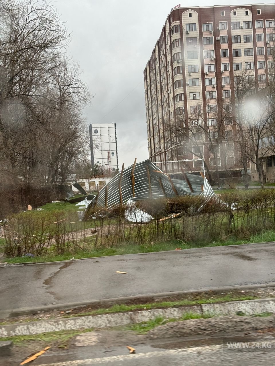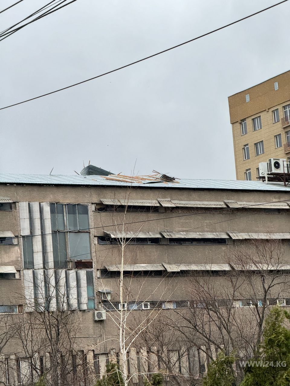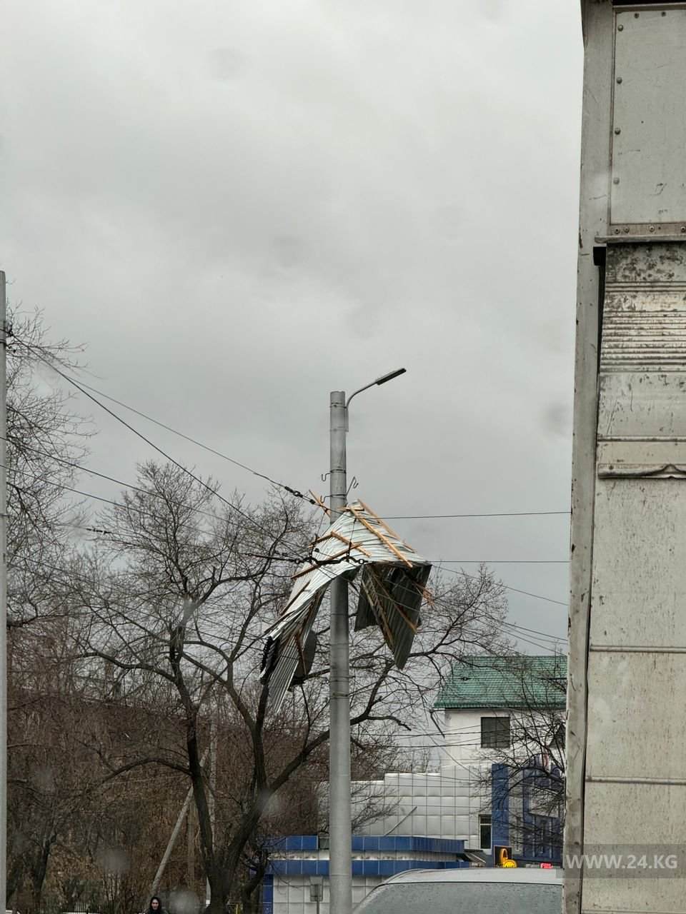 Сильный ветер в Бишкеке снес несколько крыш. Фото и видео 24-kg.com присылают читатели.