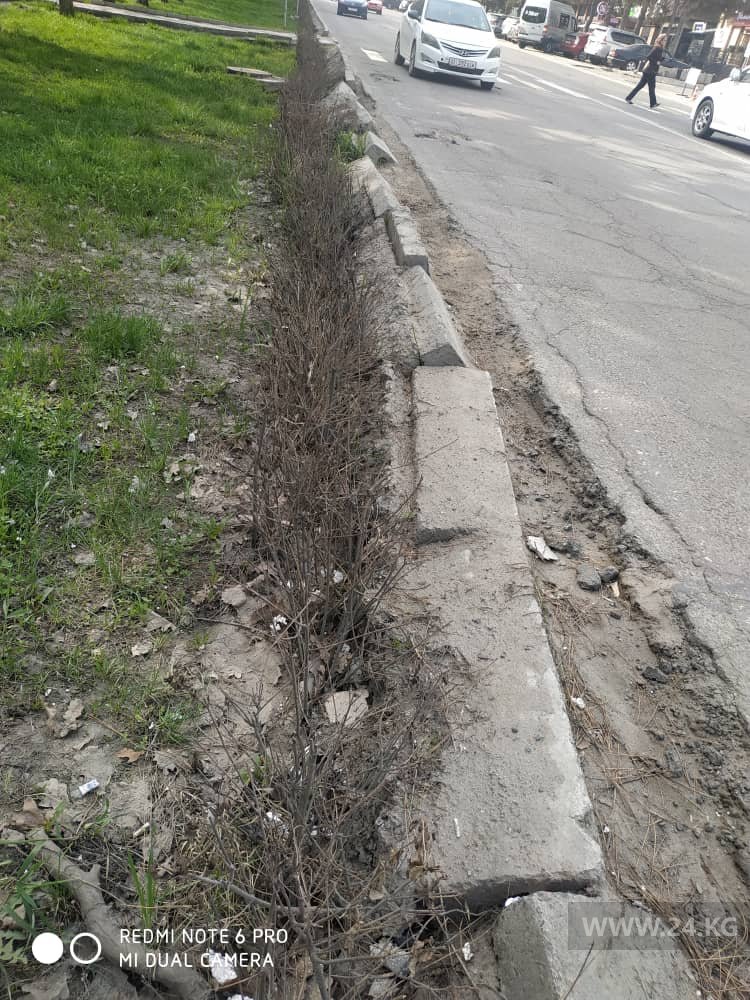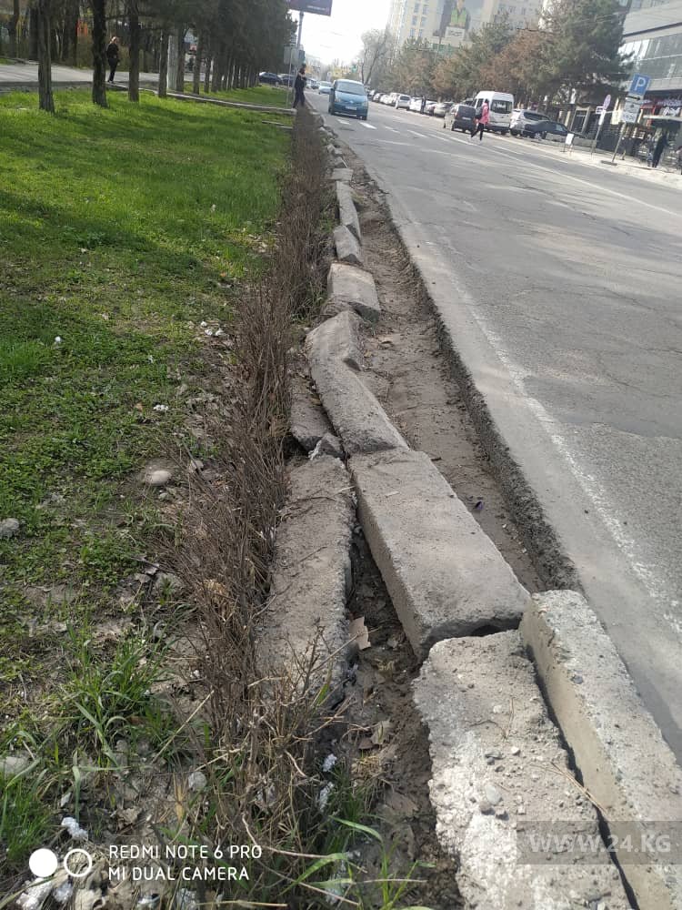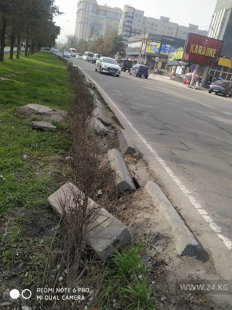 На улице Юнусалиева, напротив ТЦ «Бета-Сторес» упали бордюры. Об этом 24-kg.com сообщил читатель.