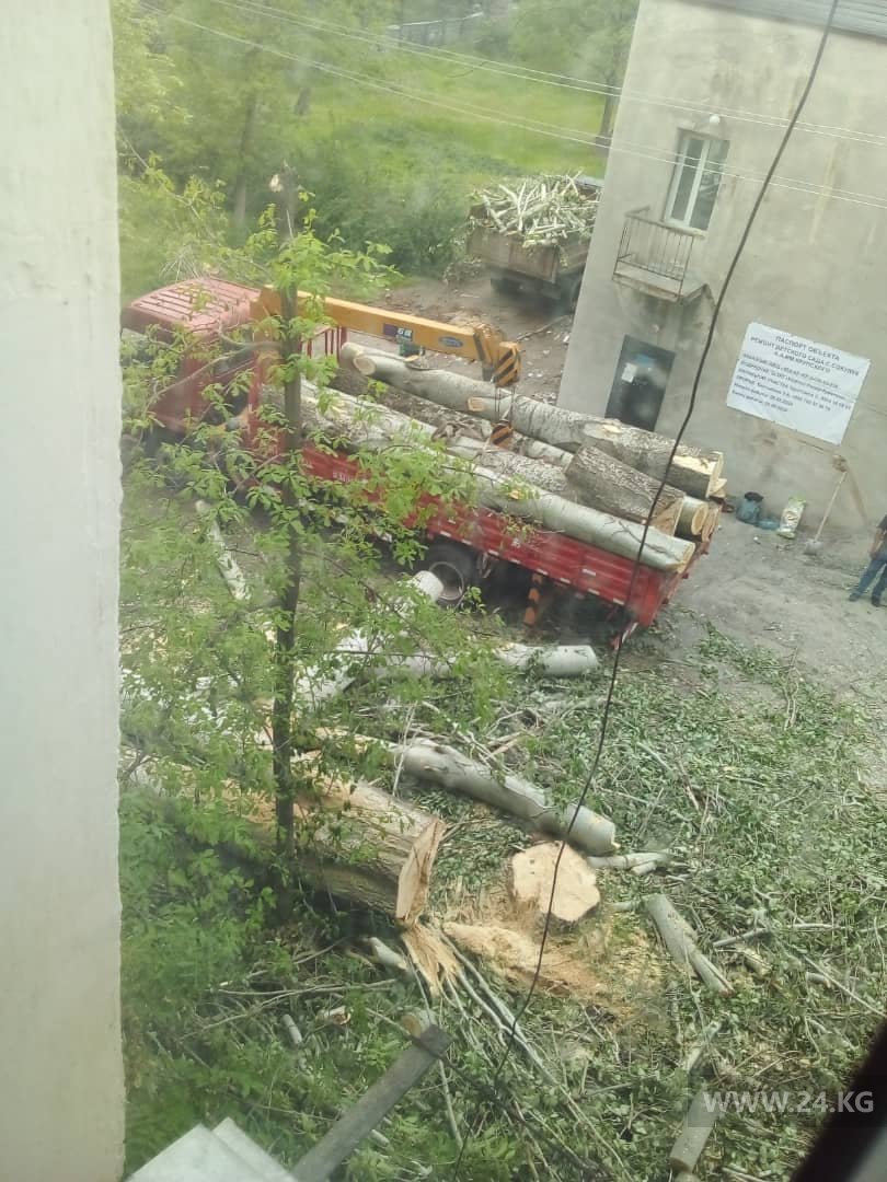 В селе Сокулук возле бывшего Соцфонда спилили деревья. Об этом 24-kg.com сообщил читатель.