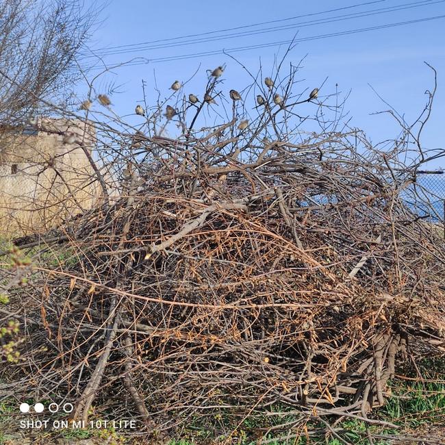 Забавную апрельскую фотографию нам прислали из села Тамчи. Воробьи оккупировали кучу старых веток, которые остались после чистки сада, и устроили настоящий совет.