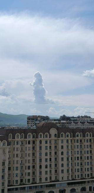 Еще побудем в столице — именно здесь Сергей Ханов приметил необычное облако, которое ему напомнило медведя. Ну тут у кого насколько хватит фантазии. Мне показалось, что в облаке можно увидеть и очертания лошади, вставшей на дыбы.