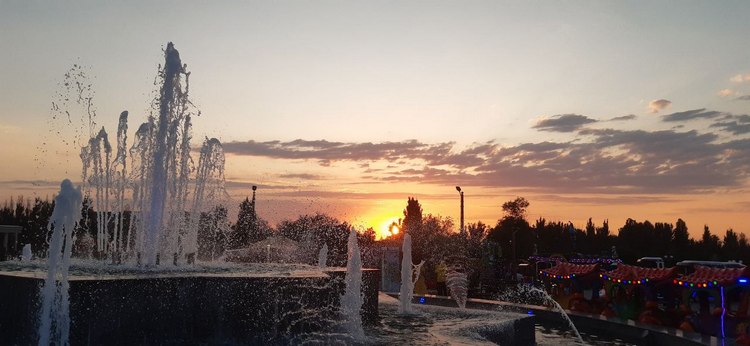 Сначала направимся в парк Дружбы Кыргызстана и Азербайджана, который находится в Бишкеке. Айлина Иманбекова побывала там в августе 2023 года и сделала фотографии фонтанов.