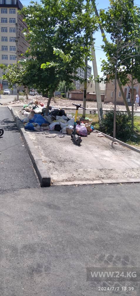 «Здесь делают ремонт дороги. Убрали мусорные площадки. Народ выкидывает мусор по обе стороны перекрестка. Ближайших площадок нету. Стоит вонь ужасная в такую жару. И это по всей улице Ахунбаева от кольца до улицы Достоевского», — написал он.