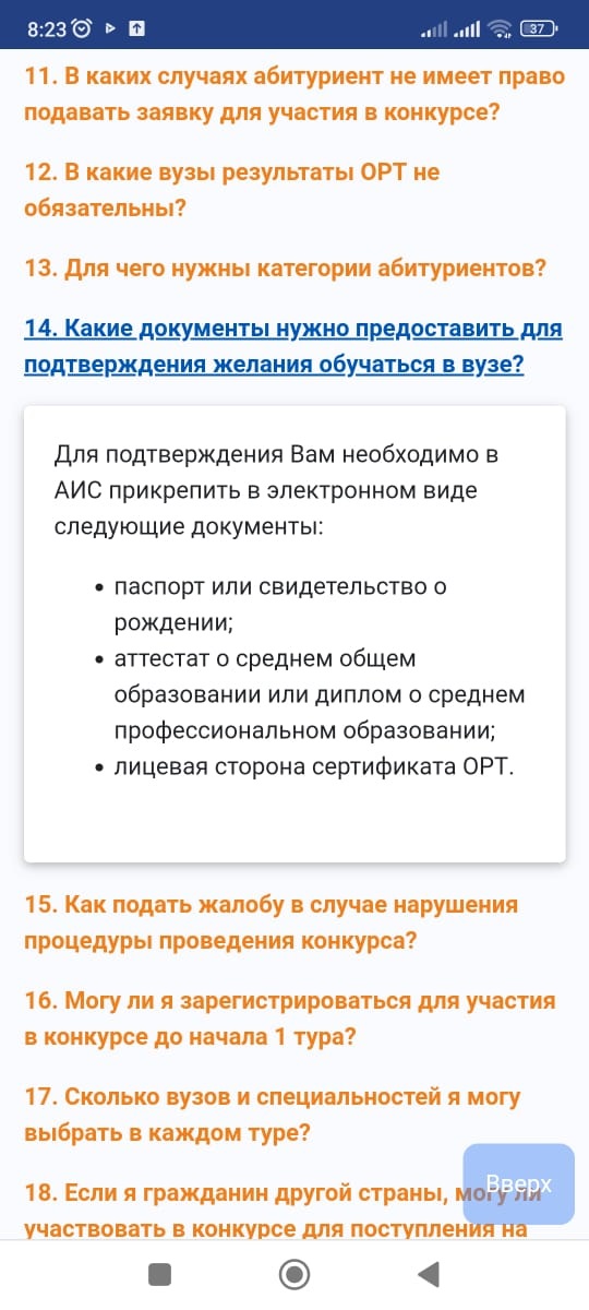 - лицевую сторону сертификата Общереспубликанского тестирования.