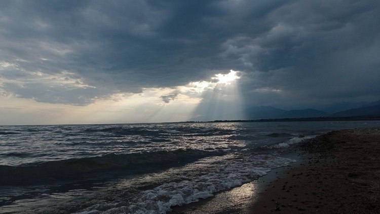 «Иссык-Куль, лето, облака, тучи и волны», — написал о своих летних фотографиях Мамасалы Ташматов.
