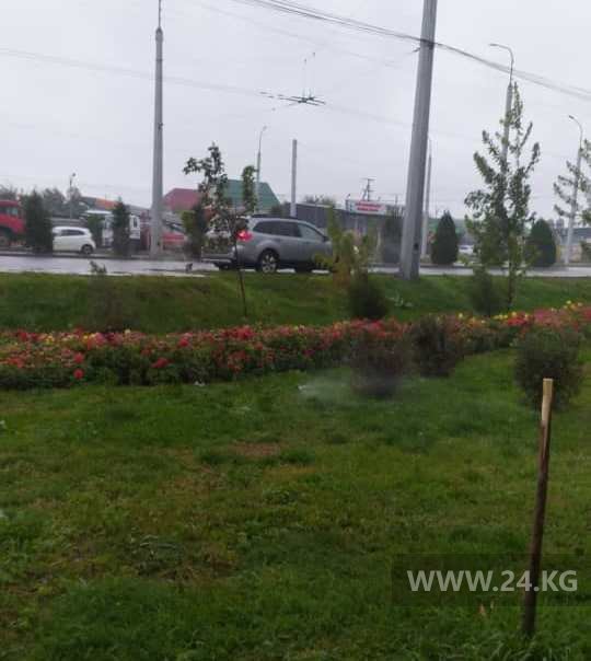 В Бишкеке в дождь включают полив газонов. Об этом 24-kg.com сообщили читатели.
