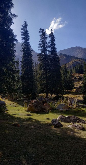 Выбираемся из Бишкека и направляемся в урочище Бойрок. Оно расположено в 30 километрах от столицы и славится березовой рощей. Там побывал Нурлан Кадыров.