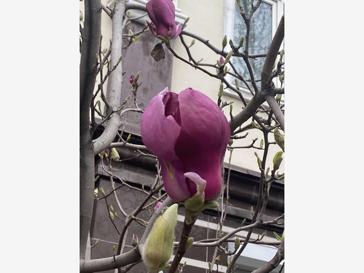 Бишкек пробудился от зимы в конце марта. Толекан Исмаилова поймала одно из таких мгновений — зацветающую магнолию.