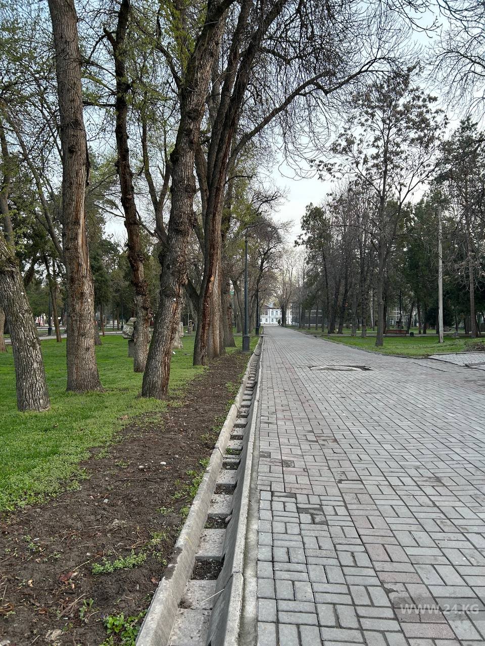 По их данным, в сквере Чингиза Айтматова вырублены все кустарники. На вопрос, что посадят взамен, рабочие ответили — ничего.