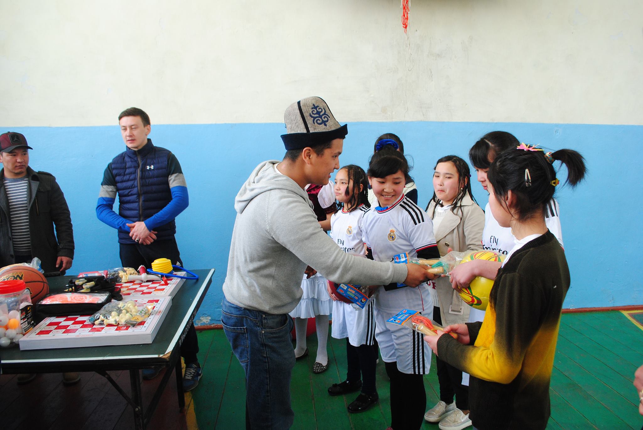 Недавно, во время празднования Нооруза, они приобрели и подарили детям спортивный инвентарь — теннисные столы, ракетки, тренировочные мешки для спортивных единоборств, мячи для игровых видов спорта, обручи, шахматы и многое другое, всего на сумму около 30 тысяч сомов.