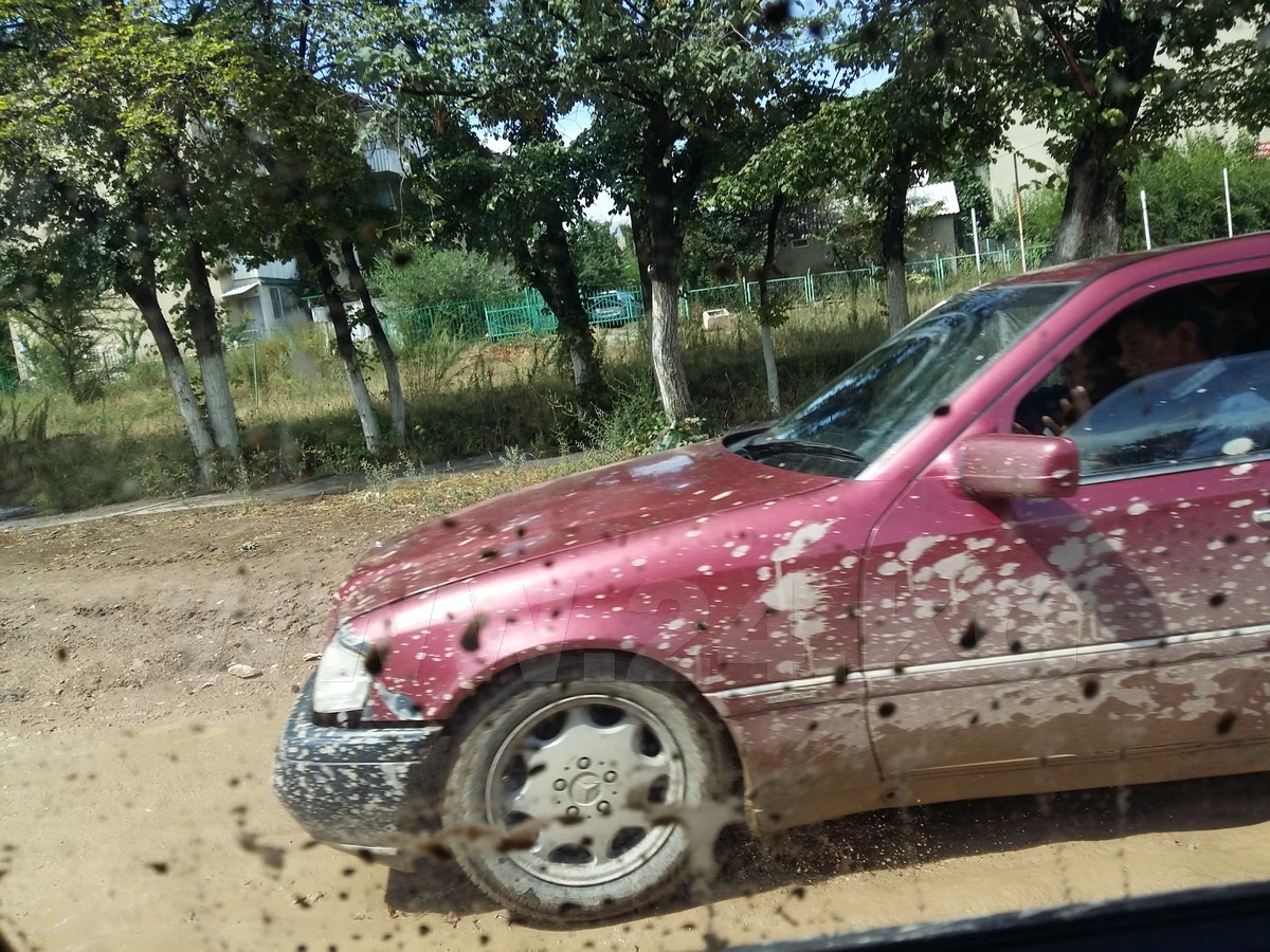 По их словам, после дождя неотремонтированные участки дороги размыты, проезжающие автомобили окатывают друг друга грязью. «В Комсомоле трасса размыта. Машины едут в грязи, как танки», — рассказал читатель.