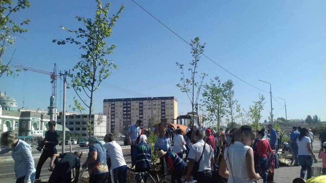Бишкекчане сегодня помогли сотрудникам «Зеленстрой» озеленить улицу Токомбаева.