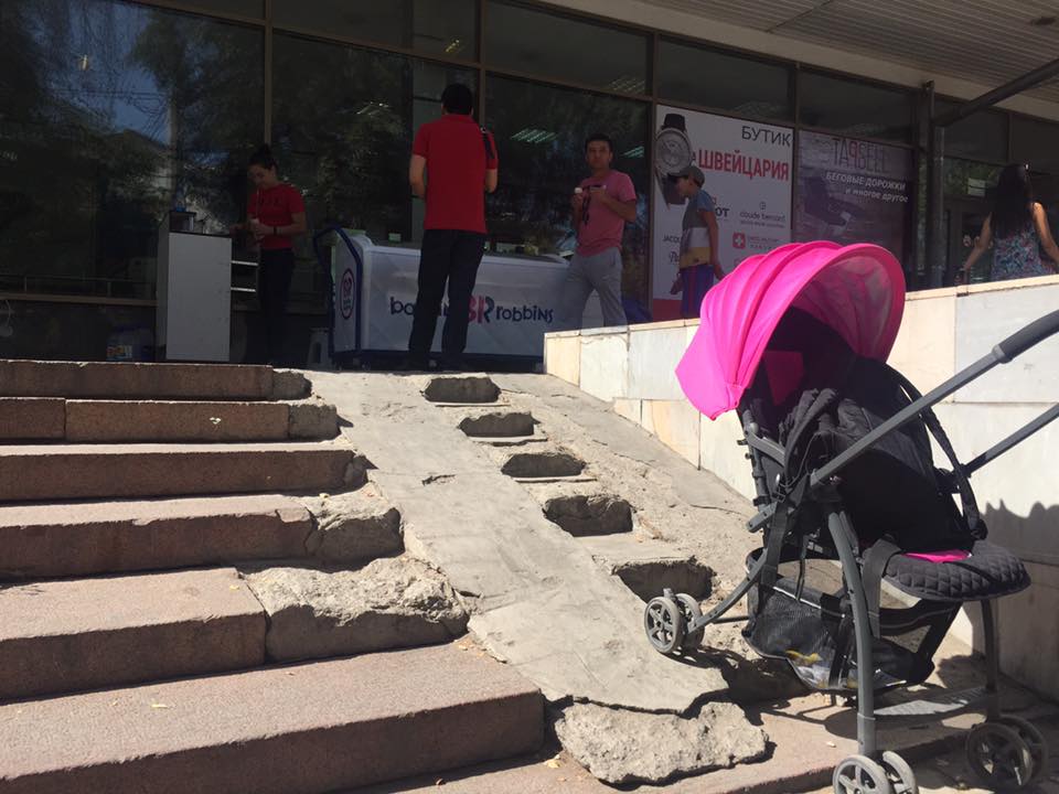 «Мэру города Бишкека. Уважаемый мэр! Вопрос: когда появятся пандусы с учетом возможностей лиц с ограниченными возможностями здоровья? А то с нынешними пандусами не каждый здоровый человек справится. Фото и видео сделано у ЦУМа, где не так давно проведена реконструкция прилегающей территории», - написал Арстанбек Саргалиев.
