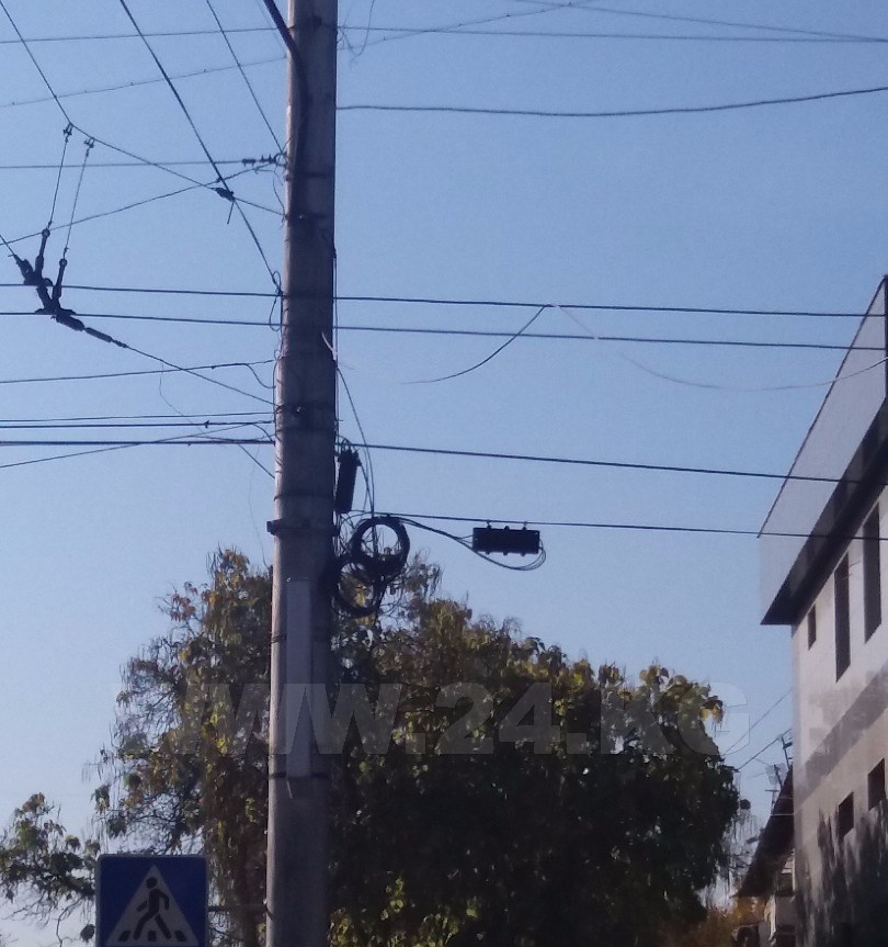 В Бишкеке электрические провода спутались с троллейбусными. Об этом ИА «24.kg» сообщили читатели.